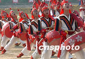 駐港部隊表演威風鑼鼓。中新社記者:錢興強