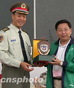 香港教育工作者聯(lián)會人士來到駐港部隊深圳基地參觀,圖為駐港部隊向該會贈送紀念品。中新社記者:黃少華