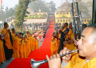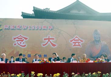 揚州市市長季建業(yè)在會上致辭。國家宗教事務局局長葉小文、日本奈良唐招提寺益田快范長老、臺灣佛光山開山宗長星云、中日友好協(xié)會副會長文遲等講了話。揚州大明寺方丈能修也在會上致了辭。