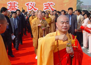 昨天在大明寺棲靈塔下舉行了盛大的紀念大會。來自國家、江蘇省有關方面的官員,鑒真東渡經(jīng)過及學習過的寺廟之諸山長老法師及港澳臺和日本的客人數(shù)千人參加了大會。紀念大會由揚州市委副書記、常務副市長洪錦華主持,中央統(tǒng)戰(zhàn)部副部長朱維群、國家宗教事務局局長葉小文、中日友好協(xié)會副會長文遲、中國佛教協(xié)會副會長學誠法師、江蘇省副省長何權、省委統(tǒng)戰(zhàn)部副部長、省宗教事務局局長翁振進、省臺辦副主任潘朗哉、省對外友協(xié)副會長、省佛教協(xié)會會長明學法師、日本駐滬總領事杉本信行、日本奈良唐招提寺益田快范長老、臺灣佛光山開山宗長星云、香港大學副校長、中國工程院院士李焯芬,揚州市府官員孫志軍、季建業(yè)、徐益民等參加了大會。