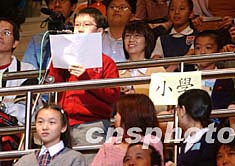 11月3日在香港伊利莎白體育館舉行的香港中、小學(xué)生與楊利偉及航天科學(xué)家見(jiàn)面會(huì)上,學(xué)生興高采烈舉著楊利偉像歡呼。中新社記者:錢(qián)興強(qiáng)