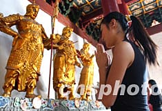 金秋時(shí)節(jié)在杭州參加新絲路世界模特大賽的中國(guó)姑娘,到江南名剎靈隱寺敬拜金剛。這里的古代傳說(shuō)護(hù)法金剛們,素有威武不能屈的美譽(yù),歷來(lái)倍受女性們的愛(ài)戴。作者:賈國(guó)榮