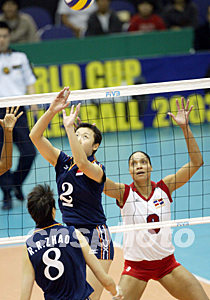 在評估了對手的實力之后,中國女排今天并沒有遣上全部主力,此前每場首發(fā)的周蘇紅和王麗娜只在場邊作壁上觀。盡管阿根廷隊曾在第二局和第三局都曾有過比分領(lǐng)先的階段,該隊十號隊員的發(fā)球和強(qiáng)攻,以及阿隊特有的手足并用,也都有過不俗表現(xiàn),但綜觀整個比賽,中國隊始終牢牢控制了場上形勢,毫無險情地維持到了終場勝局。