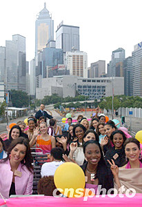 參加“第53屆世界小姐”選美大賽的110個(gè)國(guó)家和地區(qū)的佳麗,十一月九日乘車巡游香港島。中新社記者:錢興強(qiáng)