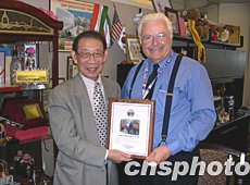 美西時(shí)間十一月十三日,中國(guó)駐舊金山總領(lǐng)事王云翔赴圣塔克拉拉郡政府辭行,拜會(huì)郡議員麥克修。王云翔任中國(guó)駐舊金山總領(lǐng)事四年。圖為麥克修議員(右)向王云翔(左)贈(zèng)送紀(jì)念獎(jiǎng)牌,對(duì)他即將離任深表惋惜。作者:洪磊