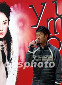 香港歌手鄭希怡15日在時(shí)代廣場(chǎng)舉行新碟發(fā)布會(huì),“師弟” 吳浩康到場(chǎng)獻(xiàn)唱助威。中新社記者:譚達(dá)明