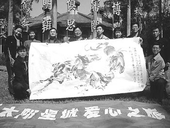 當(dāng)采訪團(tuán)離去時(shí),采訪團(tuán)的畫家李繁民先生給他送了一幅駿馬圖,以示紀(jì)念。在這里,我們祝愿他能夠一生平安和幸福。