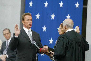 施瓦辛格是在10月7日加州州長(zhǎng)罷免選舉中,一舉擊敗因赤字問(wèn)題而飽受詬病的民主黨州長(zhǎng)戴維斯以及其他競(jìng)爭(zhēng)對(duì)手,從而當(dāng)選新任州長(zhǎng)的。