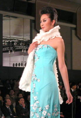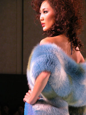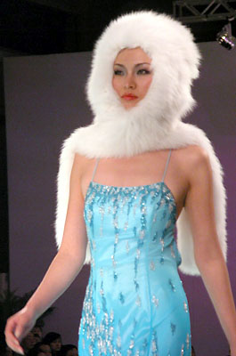 中國國際時(shí)裝周NE·TIGER 2003/2004高級(jí)皮草晚裝,個(gè)性奢華寶藍(lán)系列。
