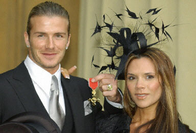 貝克漢姆的明星妻子“辣妹”維多利亞陪同貝克漢姆到白金漢宮參與典禮。她那專人設(shè)計(jì)的奢華發(fā)飾也頗搶鏡。