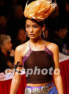 模特小姐展示的新潮頭飾與華夏傳統(tǒng)的貼身內(nèi)衣,是中國(guó)的大學(xué)時(shí)裝設(shè)計(jì)專業(yè)新秀的創(chuàng)新作品,十一月在北京參加新人獎(jiǎng)評(píng)選中,令中外時(shí)裝界的評(píng)委們耳目一新。中新社記者:賈國(guó)榮