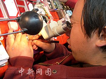 金陵民間微雕工藝能在一粒米上雕刻六首唐詩(shī),立等可取。那劍卿 攝