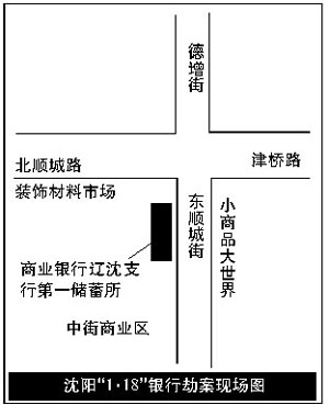 鬧事區(qū)里爆炸搶劫銀行案件的發(fā)生,在遼寧省已不是第一起。今年1月18日傍晚,發(fā)生在沈陽市大東區(qū)東順城街151號的“1·18”搶劫銀行運鈔車案件的地點同樣位于繁華的商業(yè)區(qū)!1·18”案件現(xiàn)場的對面是人頭攢動的小商品大世界,北側是車流如織的交通十字路口,身后則是繁華的裝飾材料大市場,再往南側是著名的中街商業(yè)區(qū)。