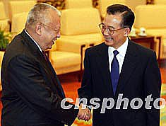 中新社北京十二月三日電(記者邢利宇)中國(guó)國(guó)務(wù)院總理溫家寶今天下午在人民大會(huì)堂會(huì)見(jiàn)了前來(lái)述職的香港特別行政區(qū)行政長(zhǎng)官董建華。