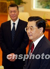 十二月三日,中國(guó)國(guó)家主席胡錦濤在會(huì)見(jiàn)澳門(mén)特別行政區(qū)行政長(zhǎng)官何厚鏵時(shí)表示,以何厚鏵為首的澳門(mén)特別行政區(qū)政府積極進(jìn)取、務(wù)實(shí)有為,并希望澳門(mén)社會(huì)各界人士再接再厲。中新社記者:鄭萍萍