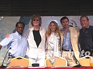 印度時(shí)代集團(tuán)主席PRANEEP GUHA、知名攝影大師DICK ZIMMERMAN、暢銷書作家CANDACE BUSHUNELL、美國(guó)當(dāng)紅電視明星CLIVE ROBERTSON、著名慈善機(jī)構(gòu)主席ORG SLONIM(從左至右) 。中新社記者:王辛莉