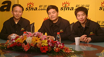 主持人:各位新浪網(wǎng)友,大家好!這里是新浪嘉賓聊天室,今天我們非常高興地請(qǐng)?zhí)栃浅菒坌闹貌稍L團(tuán)的成員來到我們的聊天室和各位網(wǎng)友在線交流如何扶助弱勢群體。首先介紹一下各位嘉賓,這位是青年社會(huì)活動(dòng)家宋體金先生(右二),另外一位是冠城大通有限公司總經(jīng)理韓國建先生(左二),還有一位記者韓雨亭(右一)是這次愛心之旅特派記者,同時(shí)也是《人物周刊》的記者。很高興三位到新浪做客。先和各位網(wǎng)友打一個(gè)招呼吧。