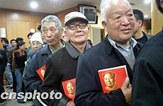 一代偉人毛澤東誕辰110周年前夕,百余名購買了紀(jì)念毛澤東書籍的北京市民在王府井圖書大樓排成長隊,靜靜地等候毛澤東之孫毛新宇的簽名,以寄托對毛澤東的深情懷念。中新社記者:史利