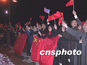 美國(guó)國(guó)務(wù)院禮賓司司長(zhǎng)埃斯納特、安德魯空軍基地空軍準(zhǔn)將格雷、美國(guó)國(guó)務(wù)院助理國(guó)務(wù)卿凱利到機(jī)場(chǎng)迎接。二百多名當(dāng)?shù)厝A人華僑和大使館工作人員也到機(jī)場(chǎng)熱烈歡迎溫家寶總理。