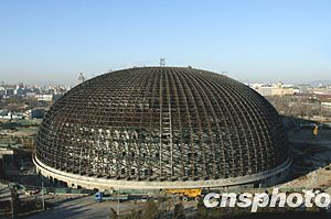 圖:國家大劇院“蛋形”輪廓初步顯現(xiàn)
