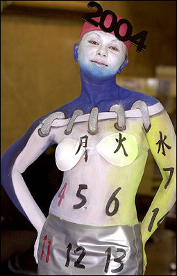 韓國(guó)漢城的一項(xiàng)商業(yè)活動(dòng)中,模特展示新奇時(shí)尚彩繪——日歷女孩。