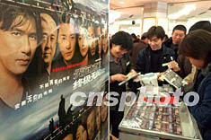 十二月中旬,眾多顧客在北京一家書店搶購與電影同步發(fā)行的《無間道3》影碟。該片正在北京等地熱映,在中國內地的票房取得開門紅。中新社記者:張煒