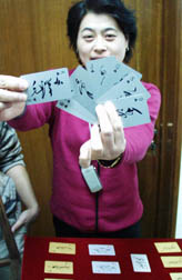 中新網(wǎng)12月16日電(記者甄雪原)在一代偉人毛澤東誕辰一百一十周年之際,北京王府井古人類文化遺址博物館舉辦了一個以個人收藏品為主的“歷史巨人毛澤東”展。兩副由毛澤東不同時期簽名而構(gòu)成牌面的金屬撲克牌也現(xiàn)身此展覽上,撲克形式新穎,頗為引人關(guān)注。
