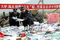 圖:廣東海關(guān)公開銷毀淫穢光碟及"三無"船只