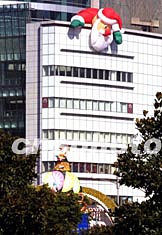 圣誕臨近,上海街頭圣誕氣氛濃郁。二十二日,圣誕老人登上一家商廈頂層俯瞰上海并代表商家“招徠”顧客。作者:湯彥俊