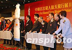 迎圣誕節(jié)之際,特備展覽“中國首次載人航天飛行展Ⅱ--給香港的禮物”十二月二十三日在香港科學館開幕,其中最珍貴的展品包括楊利偉的工作訓練服以及香港特區(qū)和珠江三角洲衛(wèi)星圖等。圖為展覽開幕啟動儀式。中新社記者:錢興強