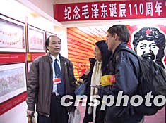 在毛澤東誕辰一百一十周年紀(jì)念日前夕,深圳收藏家李雷鳴在湖南韶山菊展出自己畢生收藏的毛澤東像章。琳瑯滿目的各時期毛澤東像章吸引中外參觀者。作者:白祖偕