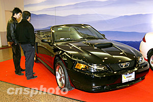 2003年12月25日,“北京新年、新款、新價格汽車展覽會”上,平時難得一見的世界級頂級名車紛紛亮相,如蓮花、野馬、雪佛蘭克爾維特等,讓車迷大飽眼福。魯谷 攝