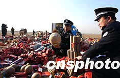 圖:北京警方集中銷毀非法、偽劣、超標煙花爆竹