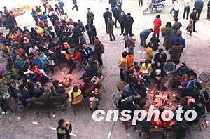 位于重慶市開縣高橋鎮(zhèn)的川東北氣礦發(fā)生天然氣井噴事故。十二月二十五日上午,災(zāi)民聚集在重慶市敦好鎮(zhèn)政府大院內(nèi)烤火取暖。作者:重晚
