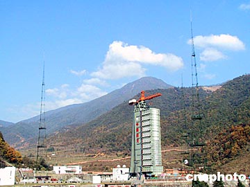 中國“雙星計(jì)劃”首發(fā)星箭組合體——“探測(cè)一號(hào)”衛(wèi)星和“長(zhǎng)征二號(hào)丙”改進(jìn)型運(yùn)載火箭在西昌衛(wèi)星發(fā)射中心整裝待發(fā)。 中新社記者 孫自法 攝