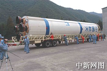圖:"長征二號丙"改進型運載火箭準備運往發(fā)射場