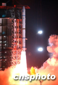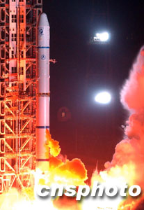 北京時(shí)間三十日凌晨三時(shí)許,中國(guó)“雙星計(jì)劃”的第一顆衛(wèi)星“探測(cè)一號(hào)”在西昌衛(wèi)星發(fā)射中心由“長(zhǎng)征二號(hào)丙”改進(jìn)型運(yùn)載火箭發(fā)射升空。至此,二00三年中國(guó)六次航天發(fā)射全部告捷,也為中國(guó)航天年畫上一個(gè)圓滿的句號(hào)。本次衛(wèi)星發(fā)射是中國(guó)運(yùn)載火箭迄今為止最高的一次飛行,“探測(cè)一號(hào)”也因此成為中國(guó)目前軌道距地球最遠(yuǎn)的一顆衛(wèi)星。 中新社記者 張煒 攝
