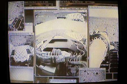 這些照片顯示出該探測器展開保護氣囊后的狀況以及火星表面的一些圖像。在收到這些照片后,美國宇航局的噴氣推進實驗室的科學家們振奮不已。