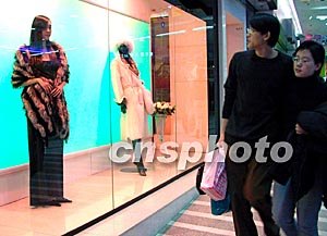 圖:北京商廈櫥窗的模特真人秀