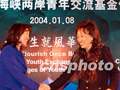 一月八日,全國青聯(lián)中華青年交流中心成立暨建立海峽兩岸青年交流基金儀式在北京舉行。全國青聯(lián)中華青年交流中心主任呂虹(左)與香港青年協(xié)會總干事王(草字頭下加易)鳴(右)簽署“中華青年領(lǐng)袖培訓(xùn)計劃”合作意向書后相互祝賀。中新社記者:任海霞