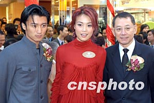 歌影紅星謝霆鋒、成龍、容祖兒、人氣組合Twins及名人何鴻燊等人1月9日在香港銅鑼灣親臨英皇鐘表珠寶分店開幕禮,并舉行剪彩儀式。中新社記者:鄧慶樂