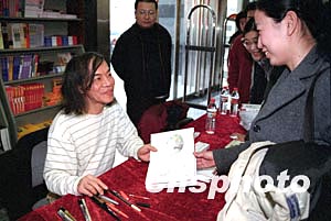 臺灣著名幽默漫畫家朱德庸一月十日在北京圖書大廈為讀者簽售他的漫畫集,現(xiàn)場他根據(jù)每位讀者的要求和特點即興創(chuàng)作漫畫,使每一位讀者都得到了獨一無二的漫畫簽名。作者:徐曦弋