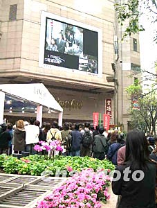 香港一代歌后梅艷芳1月12日舉行出殯,午間位于銅鑼灣時(shí)代廣場電視大屏幕下聚集大批市民駐足觀看電視直播。中新社記者:鄧慶樂