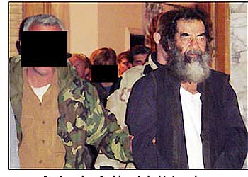 報道說,在他被捕后,坐在舒服的椅子上,被周圍的閃光燈猛拍時,他的恐懼毫無掩飾的流露了出來。這個伊拉克前總統(tǒng)在以前運動時,右眼上方留有一個傷口,當(dāng)他于12月13日被美國格斗小組從洞中拖出來的時候,那個傷口還在老地方。(天石/薛力)