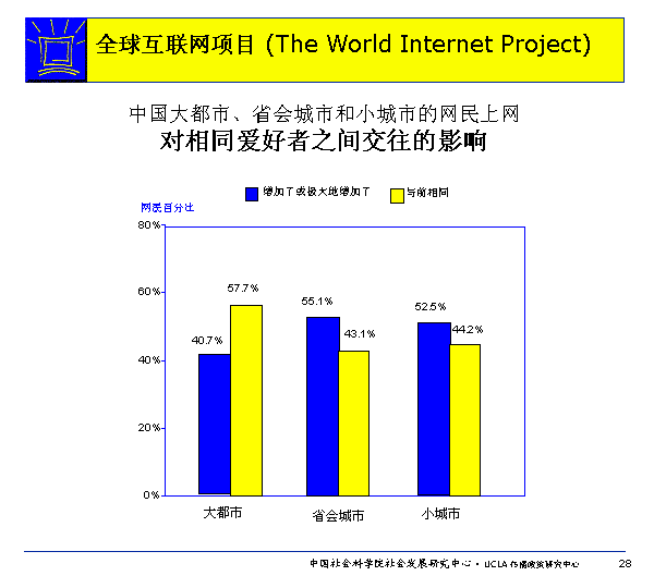 歡迎引用本調(diào)查報告的數(shù)據(jù)、圖表和結(jié)論。在所有引用本報告數(shù)據(jù)、圖表和結(jié)論的地方必須注明來源:“中國社會科學(xué)院社會發(fā)展研究中心2003年關(guān)于中國12城市互聯(lián)網(wǎng)使用狀況及影響的調(diào)查報告”或簡稱“中國社會科學(xué)院社會發(fā)展研究中心2003年互聯(lián)網(wǎng)報告”。
