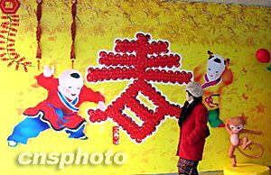 圖:申城街頭“喜娃報春”