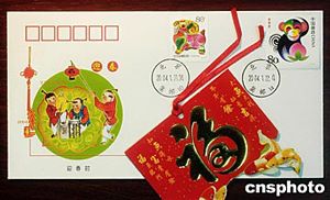 中國(guó)農(nóng)歷甲申年到來之際,北京市郵票公司為向民眾致以新春佳節(jié)誠(chéng)摯問候,和美好祝福,將于2004年1月22日發(fā)行《迎春封》一枚。該迎春封即貼有癸未年(羊年)郵票,又貼有甲申年(猴年)的郵票,并在癸未年郵票上加蓋2004年1月21日(農(nóng)歷癸未年十二月三十日)24點(diǎn)的北京郵政日戳;在甲申年郵票上加蓋2004年1月22日(農(nóng)歷甲申年正月初一日)0點(diǎn)的北京郵政日戳,以表達(dá)辭舊歲、迎新春的吉祥之意。中新社記者:鄒憲