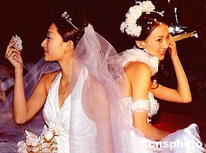 春節(jié)前夕,兩名身著婚紗的少女在重慶市舉行的“金夫人模特”攝影比賽中,合作擺出動(dòng)人"甫士",展示嫵媚風(fēng)韻。作者:周會(huì)