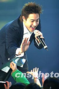 一月十八日晚,中央電視臺《音樂現(xiàn)場》春節(jié)特別節(jié)目“紅歌匯2003之攜手同行、治安之歌——慰問首都公安干警演唱會”在北京舉行,著名歌手潘瑋柏受到歌迷的熱烈歡迎。中新社記者:盛佳鵬