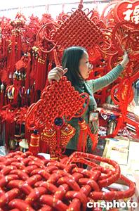 新春前夕,北京官園小商品批發(fā)市場的春聯(lián)等裝飾年貨深受市民喜愛,銷售異常紅火。中新社記者:任海霞